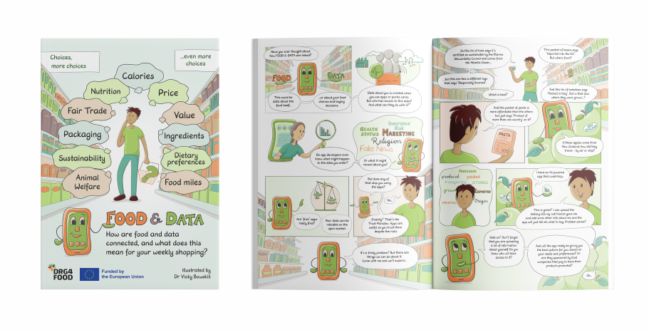 - Designed the Food Data comic book, a visual source with relatable characters facing real-life food shopping dilemmas aiming to simplify complex topics.